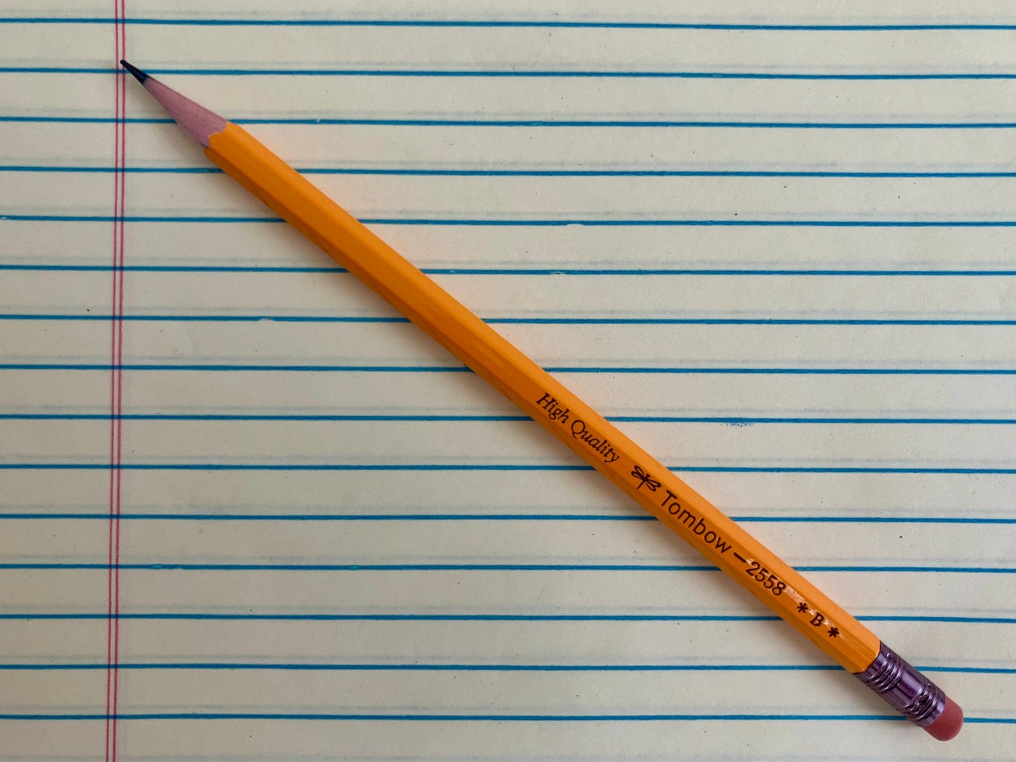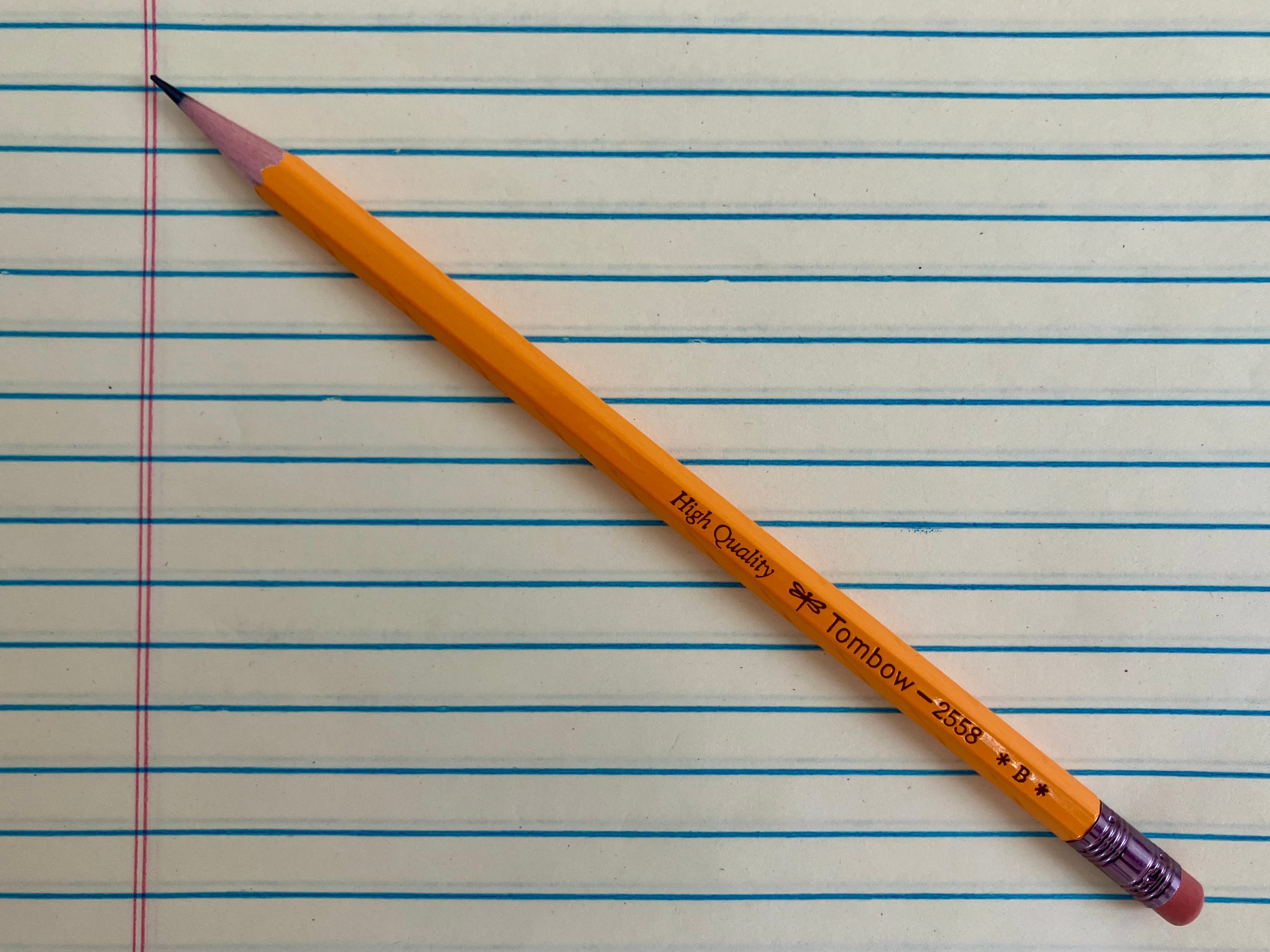 I’ve been using this incredible Japanese pencil by Tombow called the 2558. I chose the B core, which is my favorite. Smooth, dark lines on a clean, simple pencil. Zero complaints.